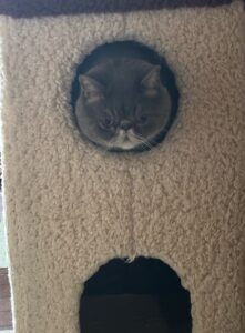 猫の爪とぎ兼、二階建てハウスの上階で